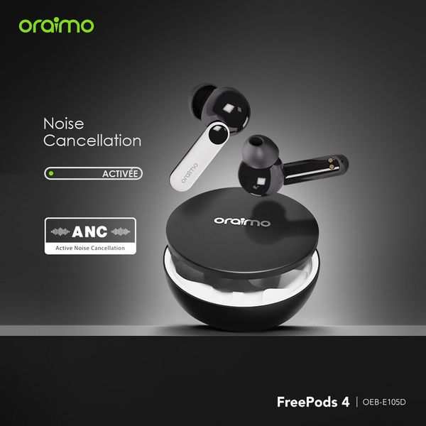 Oraimo Freepods 4 OEB-E105D derniers écouteurs d’oraimo avec des basses super et Havy et une suppression active du bruit.