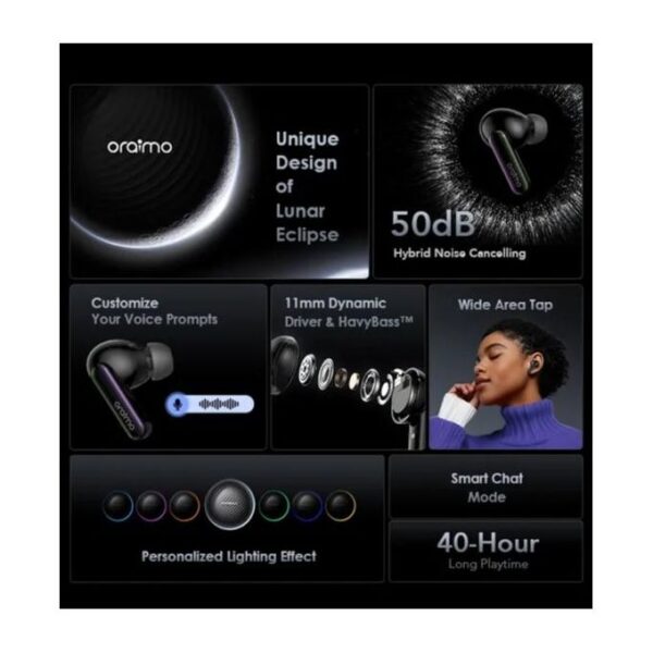 Faites l’expérience d’une tranquillité pure, comme dans l’espace, grâce à la technologie hybride avancée de suppression du bruit d’oraimo qui étouffe les nuisances sans effort et offre une réduction du bruit allant jusqu’à 50 dB. Plongez-vous dans vos morceaux préférés, en vous concentrant uniquement sur le son qui compte.